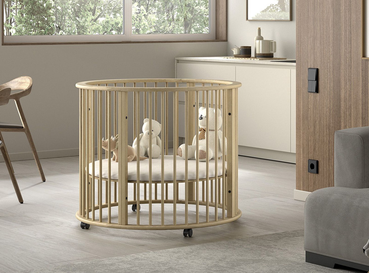 De ronde box met wieltjes (ø 90 cm) uit de Dino-collectie in warm hout is een heerlijk knus plekje voor je kleintje om te spelen, te ontdekken en te groeien. Met haar natuurlijke uitstraling en lieve design is ze niet alleen praktisch, maar ook een echte eyecatcher in huis. De bodem is verstelbaar in drie hoogtes, zodat de box met je baby meegroeit, van een piepklein newborn tot een vrolijk kruipertje. Dankzij de wieltjes rol je haar moeiteloos met je mee door het huis (of laat je ze gewoon weg voor een vaste plek). De houten kleur en ronde vorm maken haar perfect voor elk interieur, groot of klein