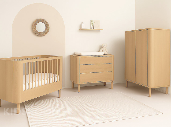 Het Yume Bed biedt een knusse en veilige slaapruimte vanaf de geboorte. Met twee hoogtestanden voor de lattenbodem en een optionele junior kit groeit dit bed mee tot 10 jaar. Vervaardigd uit massief essenhout en es-fineer MDF, met afgeronde vormen voor een warme uitstraling. De Yume commode heeft drie ruime lades, waarvan de bovenste met zes handige vakjes. Het push-systeem zorgt voor soepel openen en sluiten. Met zachte rondingen voor een tijdloze uitstraling. De Yume Kast combineert strakke vlakke deuren met de zachte rondingen en massief essenhouten poten uit de collectie. Het push-systeem zorgt voor eenvoudig openen en sluiten. Binnenin vind je legplanken en twee kledingroedes, flexibel in te delen voor lig- of hangruimte.