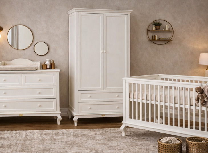 3-Delige meegroeikamer van de serie CocoMilouJuliette bestaande uit een ombouwbaar 70 x 140 cm bed, een commode met 4 laden en een 2-deurskast. De bodem van het bed is in hoogte verstelbaar. Zodra het kind groter wordt, of zichzelf kan optrekken aan de spijlen, kan je de bodem verlagen. Zo blijft het bed een veilige plek. Dit babybed kan je ombouwen naar een bedbankje, waardoor het kind kan wennen aan het zelfstandig in- en uitstappen. En je hebt langer plezier van het bed!