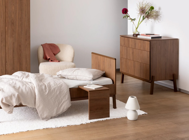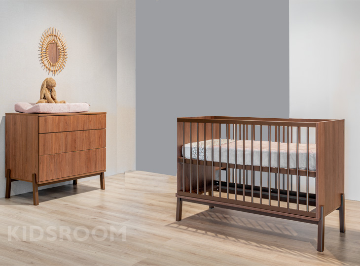 De Quax Ashi 2-delige meegroeikamer in de kleur Chestnut heeft een prachtige uitstraling. Creëer een oase van rust en stijl in de babykamer. De set bestaat uit een ombouwbaar ledikant 70x140 en een commode. Zo kan je baby slapen, kun je verschonen en heb je meer dan genoeg opbergruimte. Wil je nog meer opbergruimte? Dan kun je ook de 2-delige meegroeikamer samen met de 2 of 3-Deurskast bestellen.