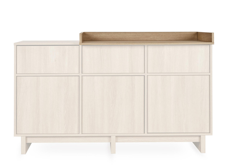 Kyo commode XL | biedt met 165 cm royale lengte veel opbergruimte voor al je babyspullen. Dankzij greeploze laden, deuren met pushsysteem en de apart verkrijgbare XL-extensie transformeer je haar eenvoudig tot luiertafel. Voeg later de opbergmodule toe voor een overzichtelijke en stijlvolle kast.