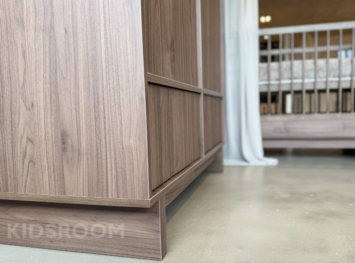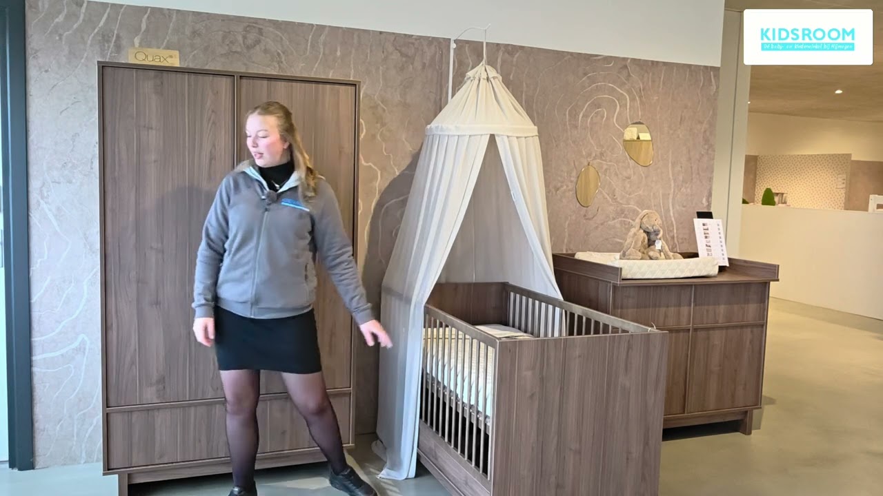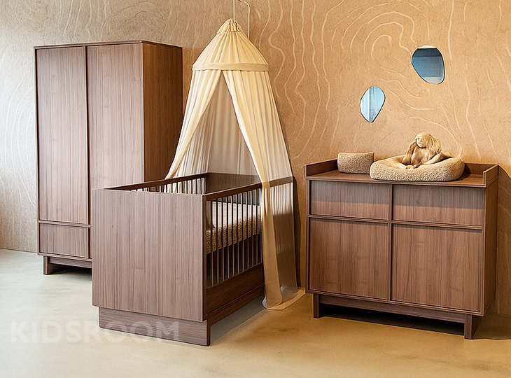 De Quax Kyo meegroeikamer in warm Walnut staat voor minimalistisch design en tijdloze elegantie. Uitgevoerd in massief beuken en melamine, met een strakke monochrome afwerking voor een moderne en rustige uitstraling.