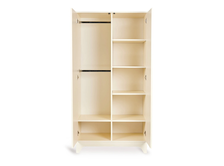 Tsugi 2-Deurskast | Twee deuren met push-to-open, voorzien van kledingroedes en legplanken voor hangende en gevouwen kleding. Stevig, onderhoudsvriendelijk en overzichtelijk.