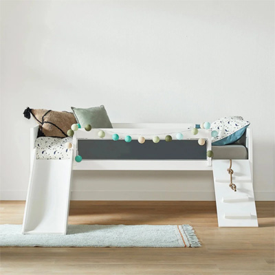 Elk kind heeft minstens één keer in zijn leven gedroomd van een bed met een eigen glijbaan om in te slapen, spelen, verstoppen, lezen. Met het trappetje omhoog en met de glijbaan weer omlaag: uw kleuter kan zich de hele dag vermaken in en om het bed en elke ochtend van een glijbaan suizen! Dit is het bed waar dromen gemaakt worden en uitkomen! Is een glijbaan toch niet helemaal wat u zoekt? Dan is een leuke speeltent of een tof speelkleed ook een mooie optie, deze zijn er in verschillende thema’s en kleuren. U kind zal urenlang speelplezier beleven in zijn of haar eigen kamer. Kortom jouw droom (Half)Hoogslaper!