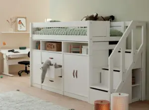 Wanneer je kiest voor een hoogslaper met bureau in één, ben je natuurlijk verzekerd van de juiste afmetingen en interieurstijl. Je kiest namelijk voor een kloppend geheel dat helemaal op elkaar is afgestemd. Hoe fijn is het om aan je bureau in alle rust en geheel ongestoord het huiswerk te maken?! Met een hoogslaper kun je zowel een bed als een werkplek op een efficiënte manier combineren.
