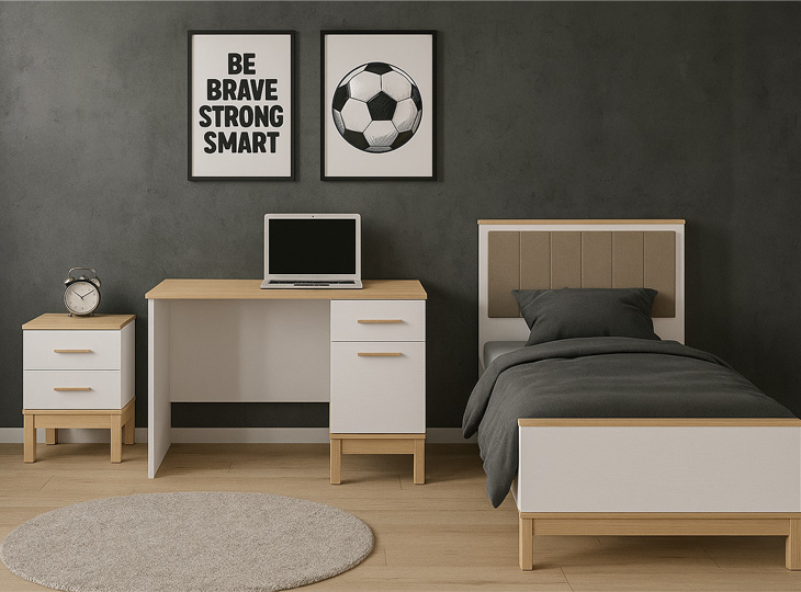 Met zijn eenvoudige lijnen en verfijnde details brengt dit bed een frisse, moderne uitstraling in elke kinderkamer. Het tijdloze ontwerp zorgt ervoor dat het bed perfect meegroeit met de stijl en leeftijd van je kind.