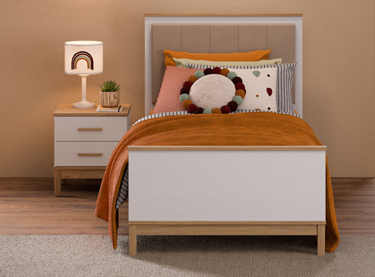Almila | Etto | Bed 90x200 | Off White/Eiken