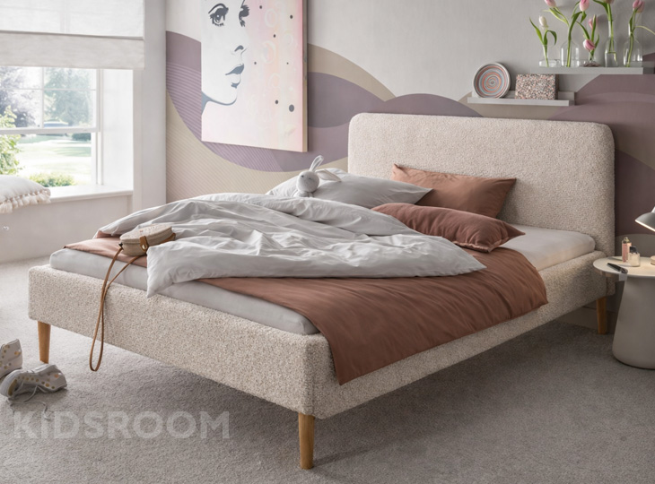 • Op de foto word Juna bed getoond met stof Ascot - Pearl 2401