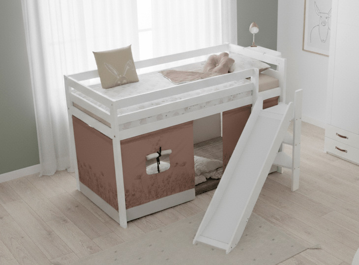 De Elements halfhoogslaper is ideaal voor kleine ontdekkingsreizigers die graag klimmen en genieten van een gezellige ruimte eronder. Of je er nu een leeshoek, speelhoek of extra slaapplaats voor logees van maakt, dit veelzijdige bed benut de beschikbare ruimte in kleinere kinderkamers optimaal.