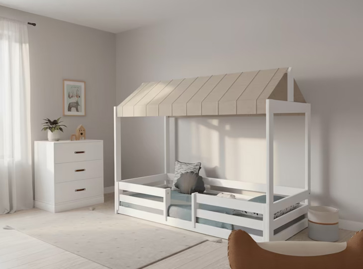 • Tip: dit Montessori bed komt zonder bedhekken of decoratieve accessoires, zodat je creatief aan de slag kunt en er een persoonlijk plekje van maakt voor je kind.