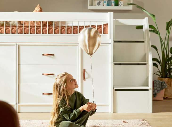 De trap kan zowel aan de linker- als aan de rechterkant gemonteerd worden, waardoor u meer vrijheid heeft bij het inrichten van de kinderkamer.