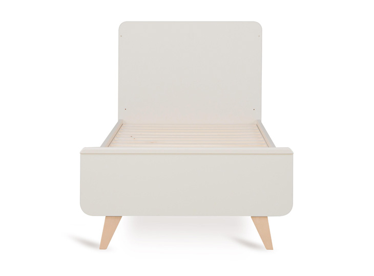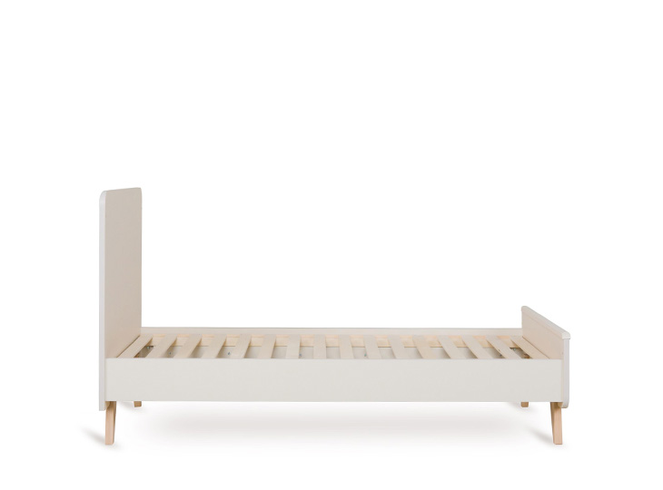 Het stevige frame van massief beukenhout en de elegante zijpanelen geven het bedje stabiliteit en een tijdloze uitstraling.