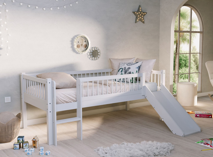 Het Forrest massief beuken kajuitbed met glijbaan is een perfecte mix van stijl, duurzaamheid en speelplezier. Met zijn afmeting van 90x200 cm biedt deze midislaper een comfortabele slaapplek, terwijl de handige glijbaan zorgt voor een speelse start van de dag.