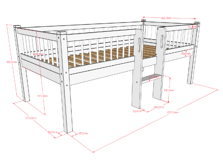 Het Forrest massief beuken kajuitbed met ladder is een perfecte mix van stijl, duurzaamheid en speelplezier. Met zijn afmeting van 90x200 cm biedt deze midislaper een comfortabele slaapplek en is er onder het bed voldoende ruimte voor opberging.