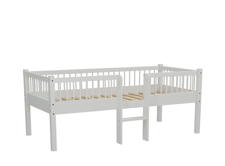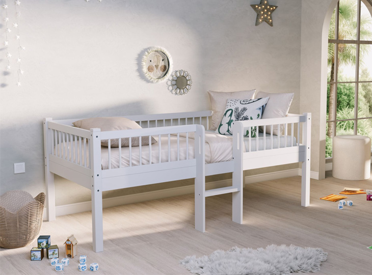 Gemaakt van hoogwaardig massief beukenhout, staat dit bed garant voor uitzonderlijke sterkte en stabiliteit. De dekkend witte afwerking geeft het een frisse, moderne uitstraling die moeiteloos past in uiteenlopende interieurstijlen – van strak en minimalistisch tot warm en klassiek.