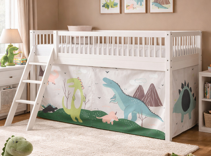 Vipack | Halfhoogslaper Forrest | 90x200 | Wit | Speelgordijn Dino