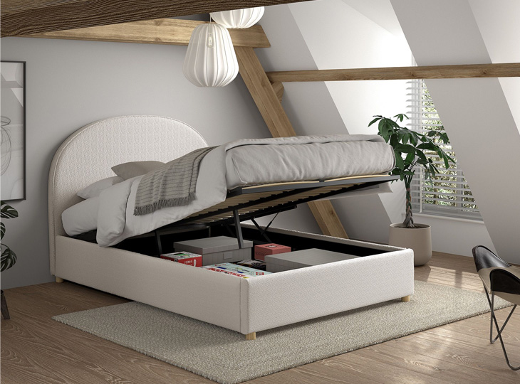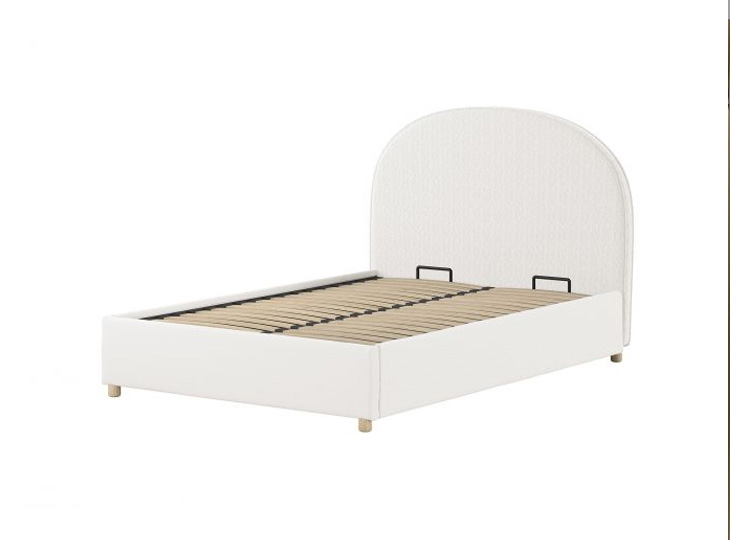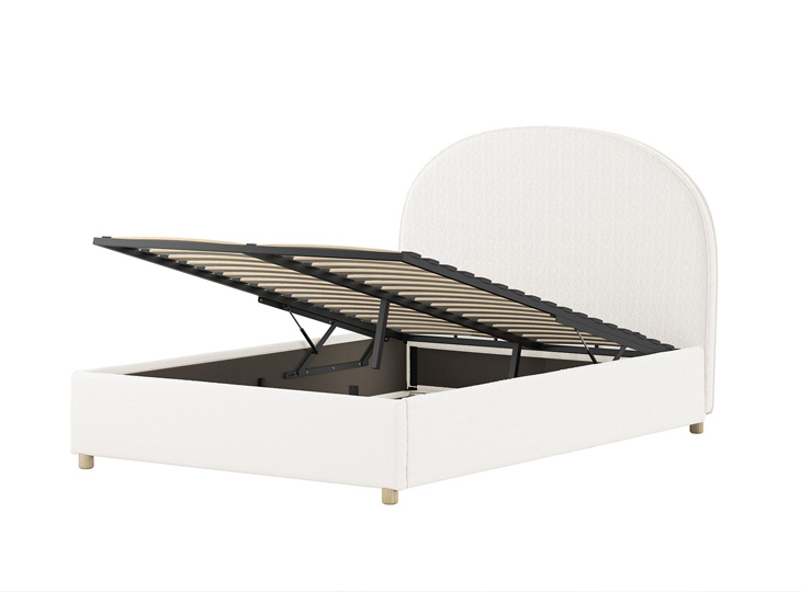 Het gestoffeerde Moon opbergbed brengt een elegante en warme uitstraling in elke kinder- of tienerkamer. Bekleed met zachte bouclé stof in rustgevende kleuren straalt dit bed luxe uit en voelt het heerlijk comfortabel aan.