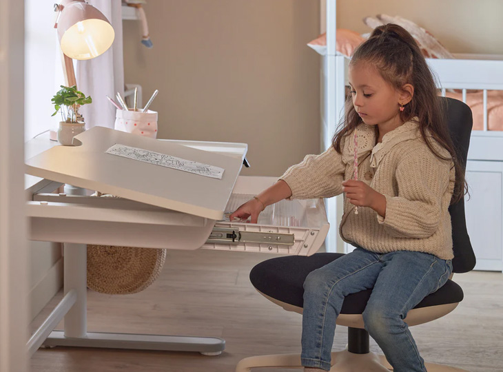 Met het ERGO 330 bureau creëer je de perfecte werkplek voor elke slimme leerling! Dit moderne bureau is niet alleen mooi om te zien, maar groeit mee met je kind dankzij de elektrische hoogteverstelling van 55 tot 89 cm. Met één druk op de knop stel je het blad eenvoudig af op de ideale werkhoogte – zittend of staand!