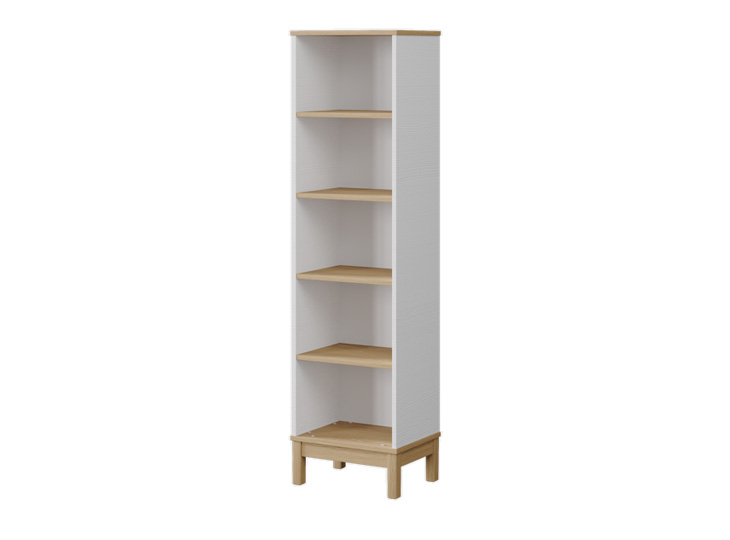 Etto Boekenkast – Ideaal voor de slaapkamer Op zoek naar een handige en moderne boekenkast voor een kinderkamer? De Etto boekenkast in geborsteld wit biedt de perfecte combinatie van functionaliteit en stijl. Met zijn strakke lijnen, houtwitte structuuroppervlak en natuurlijke accenten past deze kast moeiteloos in elk interieur – van modern tot Scandinavisch. De kast beschikt over meerdere open planken waar boeken, schoolspullen of decoratie eenvoudig opgeborgen kunnen worden. Voordelen van de Etto boekenkast:
