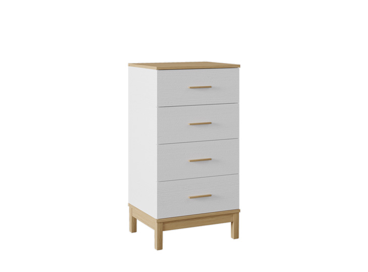De Etto ladekast in geborsteld wit combineert functionaliteit met stijl. Dankzij de strakke lijnen, het houtwitte structuuroppervlak en de natuurlijke accenten past deze kast perfect in elk interieur – van modern tot Scandinavisch.