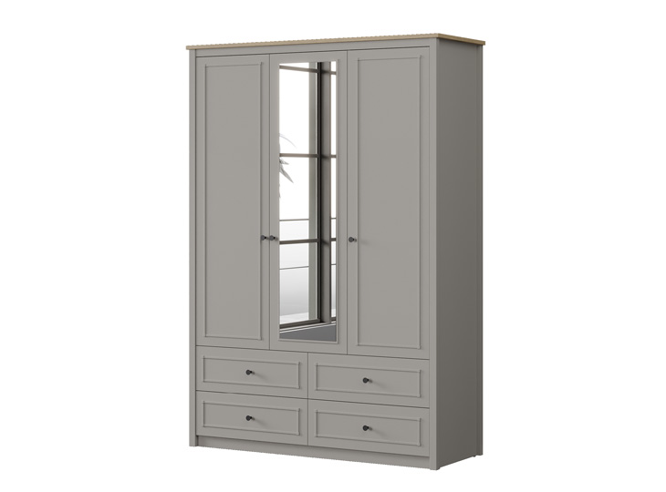 De Sento 3-deurs Kledingkast met Spiegel combineert stijl en functionaliteit in één indrukwekkend meubelstuk. Uitgevoerd in een moderne grijze tint en voorzien van een centrale spiegel, biedt deze kast een ruime opbergoplossing voor elke slaapkamer. Met vier lades aan de onderkant, legplanken en een kledingroede, is deze kast ontworpen om al je kleding en accessoires netjes en georganiseerd te houden.