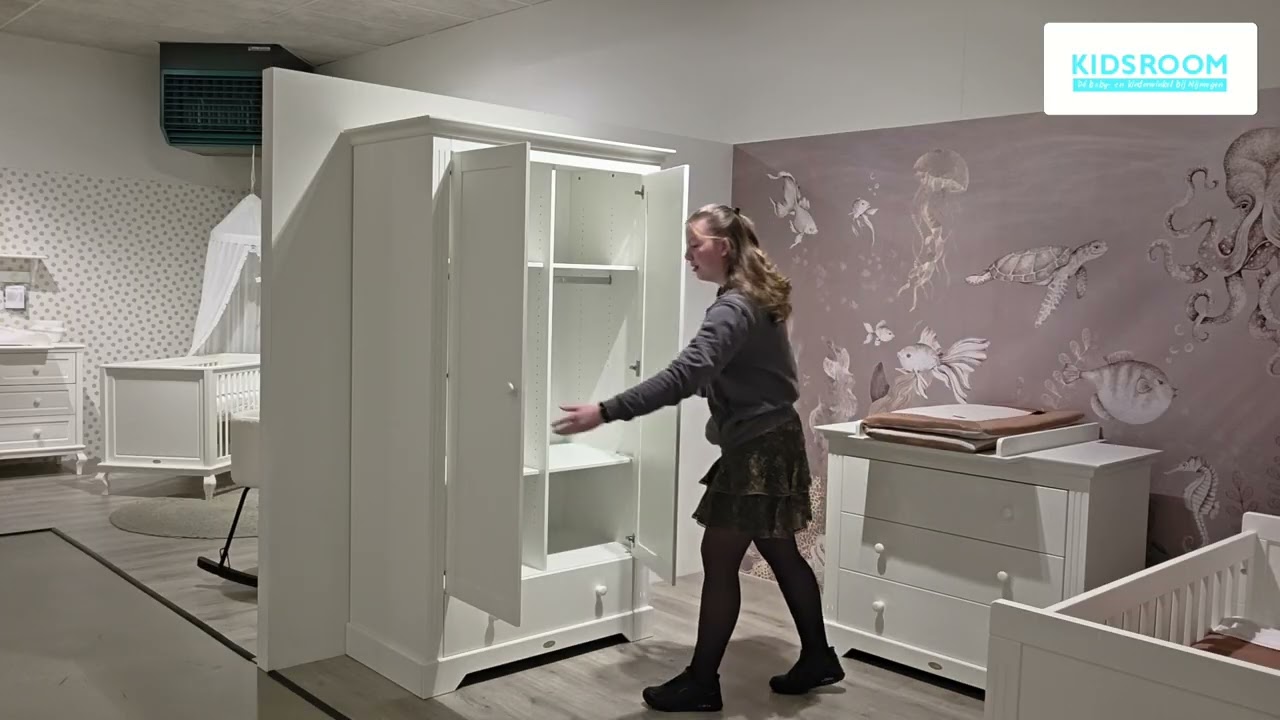 Deze grote garderobekast (Softclose) Oliver van CocoMilou heeft een landelijke uitstraling door de prachtige sierlijsten en subtiele verticale groeven. De deuren en ladenfronten zijn vervaardigd van solide MDF en zijn voorzien van ronde handgrepen. De deuren en lade zijn voorzien van een softclose mechanisme, waardoor deze zachtjes sluiten. De gehele kast is vervaardigd van robuust MDF en is dekkend gelakt in een eigentijdse off white kleur. Deze lak is op waterbasis en daardoor veilig voor kinderen en ook milieuvriendelijk. Het hout van deze kast is afkomstig uit Europese bossen. Het interieur bestaat uit twee vaste legplanken, twee in hoogte verstelbare legplanken en twee hangroedes. In combinatie met de zeer ruime lade heb je heel veel opbergruimte! Combineer deze kast Oliver met de andere meubels van dezelfde serie, en creëer een landelijke kamer.