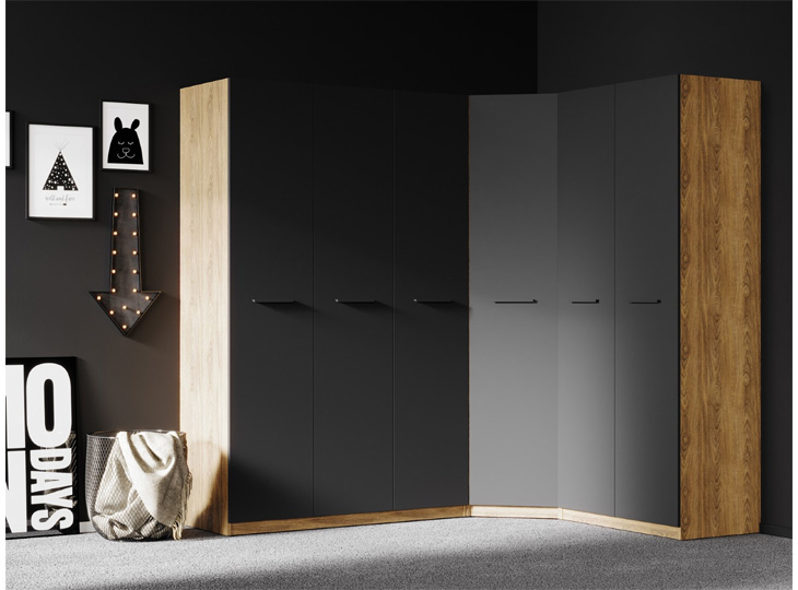 Hoekkast Legend Walnoot, Deze hoekkast is compleet ingericht en heeft verrassend veel opbergruimte! Aan de linkerkant 2 grote legplanken en 1 kledingroede, aan de rechterkant 5 kleine legplanken. Dit wordt standaard meegeleverd. Deze hoekkast in met LED verlichting is vervaardigd uit hoogwaardig meubelspaanplaat en metaal. Dat betekent dat je er jarenlang plezier aan beleeft. De kast is daarnaast verkrijgbaar in verschillende kleuren en er zijn ook diverse voorpanelen om uit te kiezen. Je vindt dus zeker een model dat perfect in de slaapkamer past. Je kan de sfeer nog leuker maken als je het combineert met de andere Legend meubels uit het Rocky assortiment. De mogelijkheden zijn eindeloos!