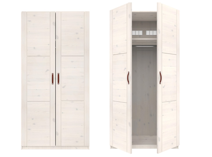 De 2-deurs kledingkast is ontworpen met eenvoud en functionaliteit in gedachten, daarom zal de kledingkast nog vele jaren in elke kinderkamer passen. Er zit een ventilatiekanaal achter de kledingkast, zodat de inhoud van de kledingkast geventileerd wordt.