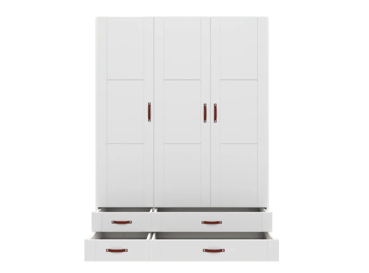 Deze prachtige 3-deurs kledingkast van Lifetime in de kleur wit zorgt voor meer dan genoeg opbergruimte in de kinderkamer. Achter de deuren vind je meerdere legplanken en een grote kledingroede. Daaronder zijn er ook nog vier ruime lades beschikbaar. Wilt u de kast een mooie upgrade geven? Kijk dan ook eens naar de kledingroede met led verlichting.