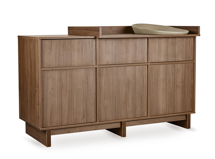 Met 165 cm lengte biedt deze commode volop opbergruimte voor al je babyspullen. Drie greeploze laden en drie deuren met pushsysteem maken alles makkelijk bereikbaar. Met de apart verkrijgbare XL-extensie transformeer je haar moeiteloos tot een ruime luiertafel. Voeg je in een latere fase de bijpassende opbergmodule met open vakjes toe, dan ontstaat er een overzichtelijke kast waarin je favoriete verzorgingsproducten of accessoires mooi tot hun recht komen, perfect voor in de babykamer maar net zo stijlvol in een leefruimte.. Strakke lijnen, warme houttinten en Scandinavisch-Japanse elegantie maken ‘m een stijlvolle aanwinst voor elke kamer.
