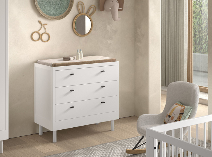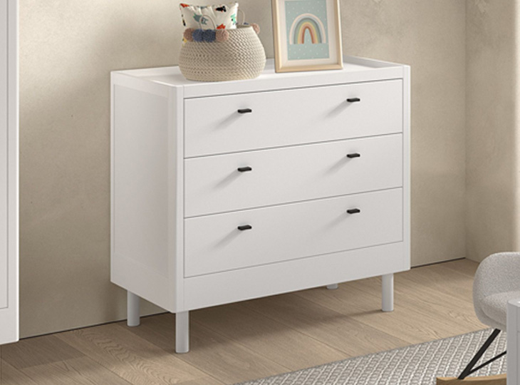 De commode is uitgerust met drie ruime lades, die voldoende opbergruimte bieden voor al uw essentiële items. Zo combineert dit meubelstuk functionaliteit met een tijdloze uitstraling, waardoor het een perfecte toevoeging is aan iedere ruimte die extra opbergruimte of een verzorgingsplek nodig heeft.