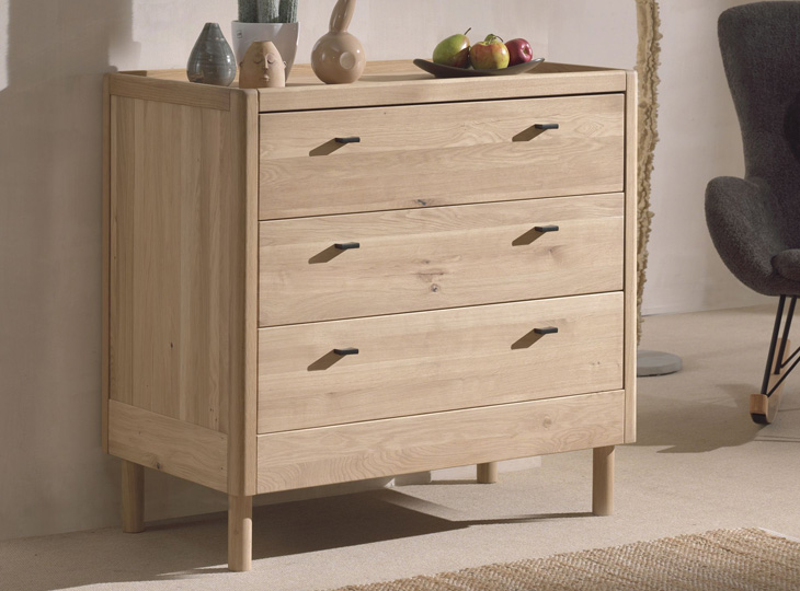 De Forrest Oak ladekast is vervaardigd uit hoogwaardig Europees eiken en beschikt over een warme, natuurlijke houtafwerking die de schoonheid van het eikenhout accentueert. Dankzij de stevige constructie is de commode duurzaam en betrouwbaar. Met drie ruime lades biedt hij voldoende opbergruimte voor al je essentiële items. Deze commode combineert functionaliteit met tijdloze elegantie, waardoor hij een perfecte aanvulling vormt op elke ruimte die behoefte heeft aan een praktische opbergoplossing of verzorgingsplek. De Forrest-collectie is met oog voor detail ontworpen en straalt kwaliteit uit op elk niveau.