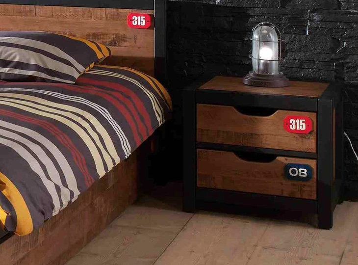een stijlvolle en praktische aanvulling op je slaapkamer. Het nachtkastje is gemaakt van massief grenen hout met een geborstelde afwerking, waardoor het een natuurlijke en robuuste uitstraling heeft. De zwarte details geven het een modern tintje. Met twee ruime lades heb je genoeg opbergruimte voor je spullen. Alex nachtkastje past perfect bij elke inrichting en zorgt voor een gezellige sfeer in je slaapkamer.