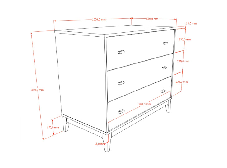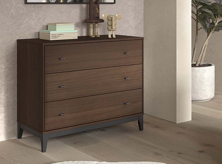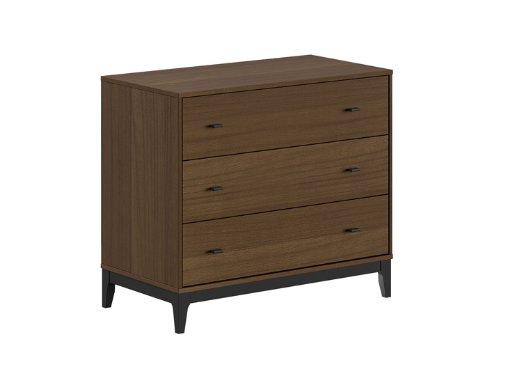 De Ilyas commode is uitgevoerd in een warme walnootkleur en afgewerkt met zwarte pootjes en handgrepen, wat zorgt voor een stijlvolle en hedendaagse uitstraling. Het tijdloze design maakt deze kast een mooie aanvulling in elke babykamer en combineert moeiteloos met verschillende interieurstijlen. De commode beschikt over drie ruime lades die voldoende opbergruimte bieden.