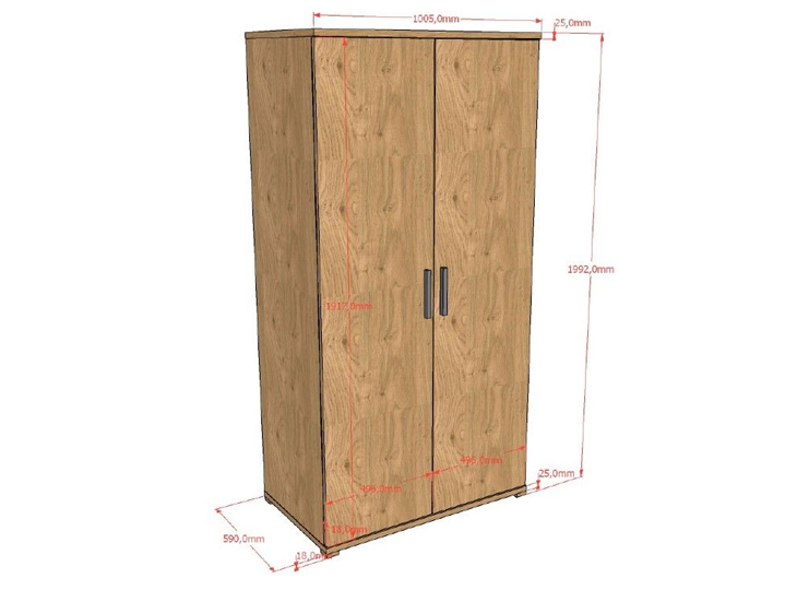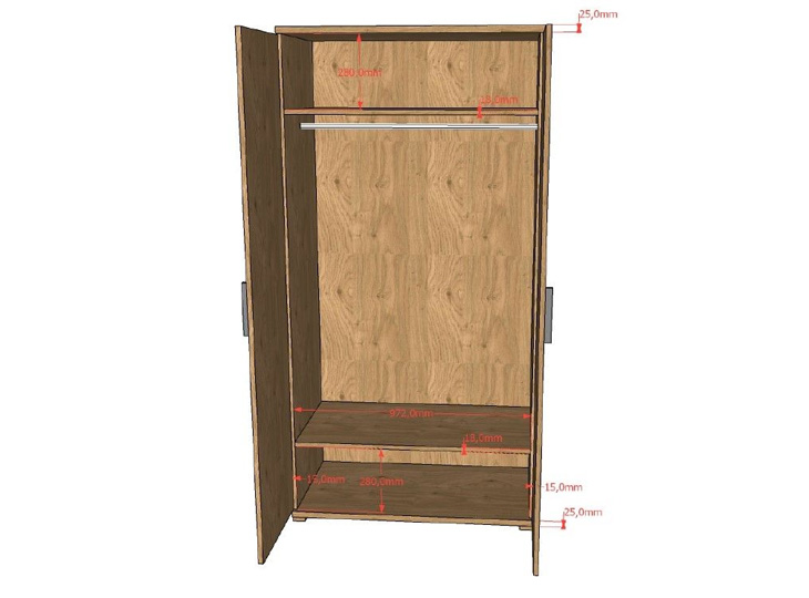 Specificaties Vipack | Sam | 2-Deurskast | Eiken