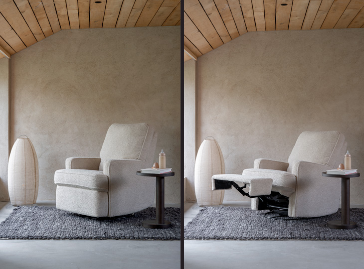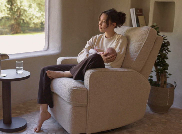 De Quax Swivel & Gliding Recliner is ontworpen om ultiem comfort te bieden tijdens de dagelijkse momenten van voeden, knuffelen en samen tot rust komen. Dankzij de zachte schommelbeweging, de soepele 360° draaifunctie en de manuele relaxstand met uitklapbare voetsteun, is ontspanning altijd binnen handbereik. De fauteuil is bekleed met een zachte, aangename stof en royaal gevuld voor langdurig zitcomfort. Een rustgevend en stijlvol element dat perfect past in elke moderne leefomgeving.