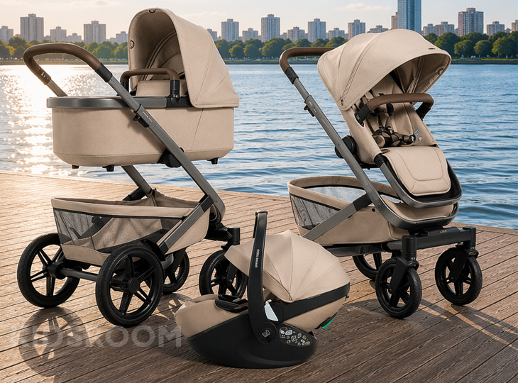 De Joolz Geo5 Bundel met een bijpassende autostoel van Maxi-Cosi. Dankzij het handige kliksysteem zet je de autostoel eenvoudig op het onderstel ideaal voor snelle overgangen onderweg (adapters apart verkijgbaar) Of je nu door de stad, het bos of over het strand rijdt: met de Geo5 ben je klaar voor elk terrein en elk weertype. De kinderwagen groeit mee van één naar twee en zelfs drie kinderen (met meerijdplankje), zonder dat je een nieuwe wagen nodig hebt.